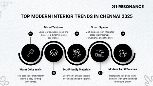 As the founder of Resonance Designs, I’ve always loved creating spaces that feel fresh, unique, and personal. In 2025, modern interior designers in Chennai are embracing a whole new wave of color and texture. Clients searching for “interior designers in Chennai” are looking for homes that stand out and feel special not just another project, but a true reflection of modern living. If you want your home to feel vibrant, comfortable and up-to-date, you’re in the right place.